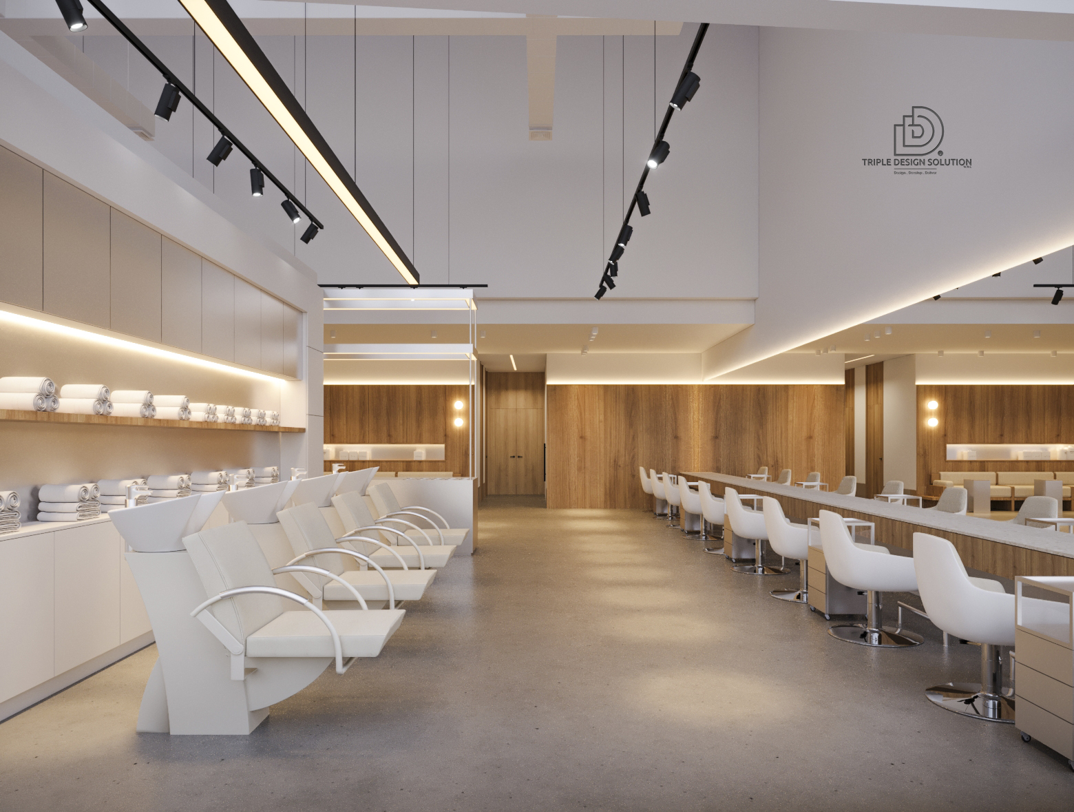 We concentrated on creating a luxurious design that matches the concept of the place. A salon for ladies to relax and enjoy their pampering time should have the proper design and ambience. With concentration on marble on all the counters and the addition of gold and white colors that add up to the luxury of the place.